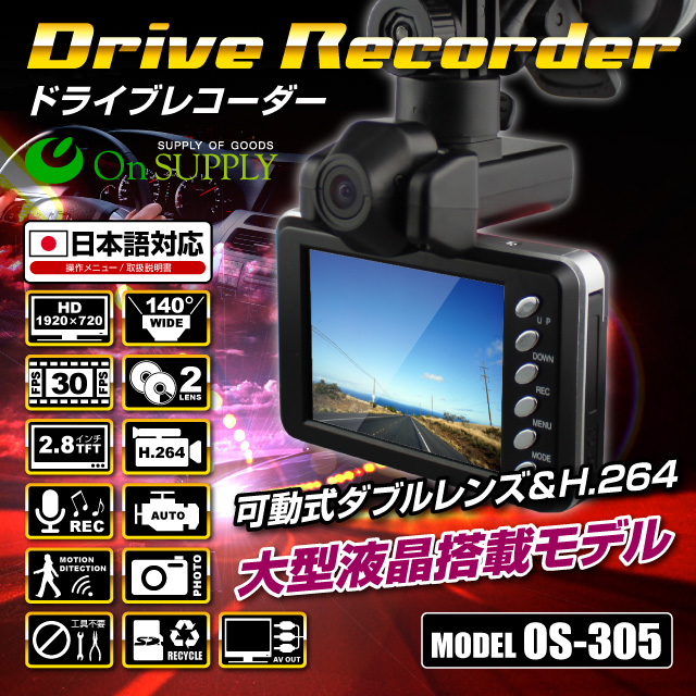 トップ > 終売商品のご案内 > 過去の終売商品 > 【販売終了】ドライブレコーダー 小型カメラ 両面 レンズダブルドライブカメラ (OS-305)
